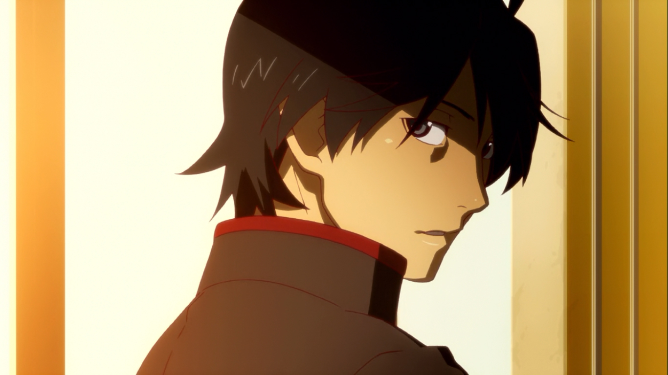 Anyone who has studied film has probably heard of the French New Wave (La Nouvelle Vague), a movement of French filmmakers breaking off from traditional Hollywood filmmaking to produce their own, low budget, artistic works. The Nouvelle Vague was highlighted by films that compensated for their low budgets with inventive camerawork that changed a story could be conveyed through jump cuts and excessive environmental imagery. Characters would foreshadow events, break the fourth wall, and display a sentient knowledge of their existence as fictional characters, accompanied with extensive knowledge of the genre they inhabitToday’s show, Bakemonogatari, is the animated equivalent of the French New Wave. It is an artistic overdose of beautiful imagery and metaphysical commentary and even having lacked the analytical mind to truly grasp the show’s brilliance when I first watched it, I kept watching simply because it was so alien to me that I had to delve deeper. Bakemonogatari is the story of Koyomi Araragi, a young man living in a small, normal provincial town in Japan, but who’s personal life is far from ordinary. Due to a dark series of events alluded to in the opening minutes of the first episode, Araragi is half vampire, a state upon which he was made by a powerful vampire who for reasons unknown to the audience, is now reduced to the form of a young girl, without the ability to speak. Her caretaker is Meme Oshino, a foreign man in a Hawaiian shirt with an encyclopedic knowledge of the supernatural. Araragi is acquaintances with Oshino, as Araragi, as if cursed, tends to attract all manner of supernatural occurrences to him.