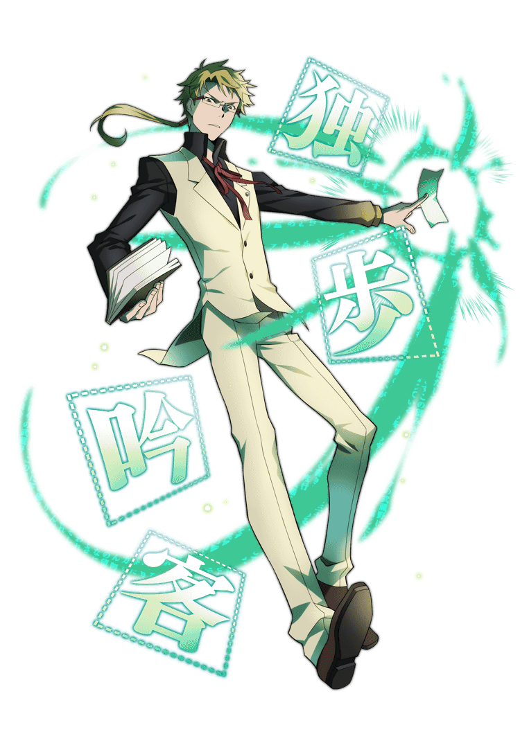 Bungo‘s biggest gimmick is how major characters are based on real literary authors. Their abilities are references to their works. Dazai’s ability to nullify any other ability through touch is named “No Longer Human,” referencing Dazai’s most famous novel. His suicidal fantasies in the show are inspired by the real Dazai’s own multiple suicidal attempts. Every character has some connection to their real-life counterpart aesthetically, philosophically, and in terms of personality.