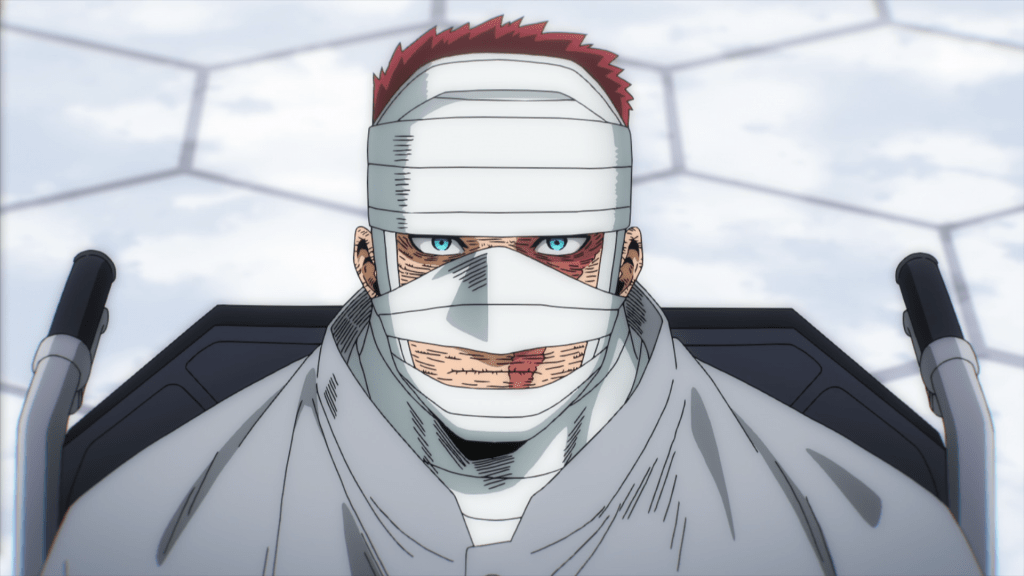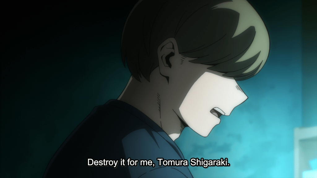 I’m beating around the bush, but I already put a spoiler warning, so let’s have at it. Ever since Season 2 and the introduction of the Hero Killer Stain, My Hero Academia has been increasingly critical of its world. The League of Villains may have sown chaos at every step of the journey, but they were also compelling and even at times likable precisely because they were evidence of their society’s failures. Toya Todoroke, the son of the hero Endeavor, turned into the villain Dabi because of his father’s failings. The Todoroki Family drama, a throughline across multiple seasons, is not just an uncomfortably intimate reckoning with abuse and trauma. It is a condemnation of this society; the ugly truth beneath the glittering veneer.