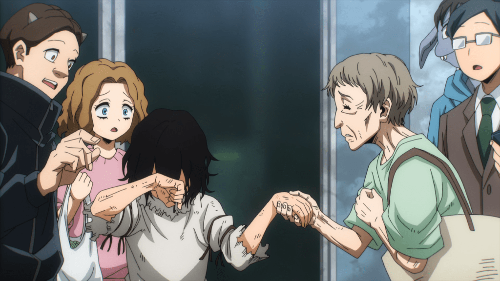I love a good epilogue, especially one that knows how to take its time. Three episodes to cap off nearly a decade of characters, and one chapter whose very namesake is earmarked for putting to bed the Todoroki family arc. Endeavor may be hated by a great many fans, but one does not have to love him, much less like him, to feel inspired by his will to atone for his past sins for the rest of his life. His eldest son doesn’t magically forgive him; some wounds will never heal, but they all recognize their father’s willingness to try, especially Shoto. This is one of the boldest, bravest, and most maturely handled arcs I’ve ever seen from anime, and I respect the hell out of Kohei Horikoshi for committing to it.