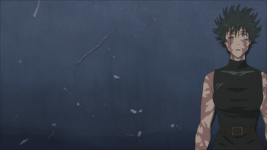 The transformation that Maki undergoes in such a short time is really fascinating, not only because of the tragedy therein, but also in how it manages to give closure to a character who isn’t even there. Toji Fushiguro, Megumi’s sleazebag of a father, was one of the most memorable characters of Season 2 for a multitude of reasons, but the most pivotal here was his heavenly restriction. He and Maki are very similar, but Toji was always more powerful; he didn’t even need glasses to see cursed spirits. If Maki was an exception to Jujutsu Kaisen‘s magic system, then Toji is a contradiction to it. And now Maki has become just like him.
