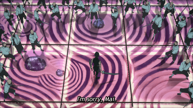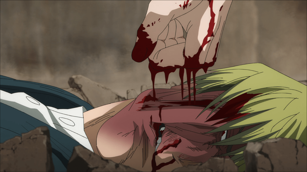 Even after the Kukuru unit is slain – you know, when the action explodes beyond the confines of the building – it never loses that charm and sense of frivolity, which, to me at least, is proof that the similarity to Tarantino isn’t superficial. It demonstrates an understanding on the part of the storytellers as to what makes a revenge story like Kill Bill so unforgettable. So even as the action abandons any association with its filmic inspiration, it carries that tone and those powerful emotions to fuel a climax that never relents. It’s part of the reason why the story can get away with introducing and killing off the Hei in the same episode. We are told that they are the strongest of the Zenin clan, then they hit Maki with everything they have, and then they die. I love it.